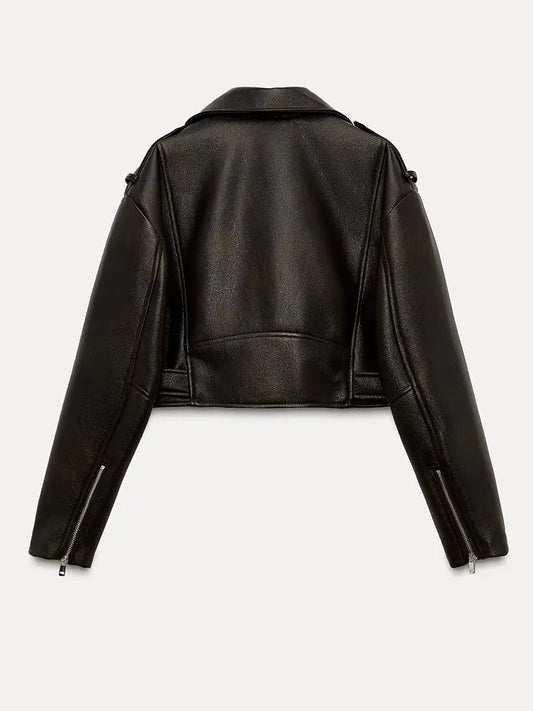 MODÉRA Cropped Faux-Leather Moto Jacket